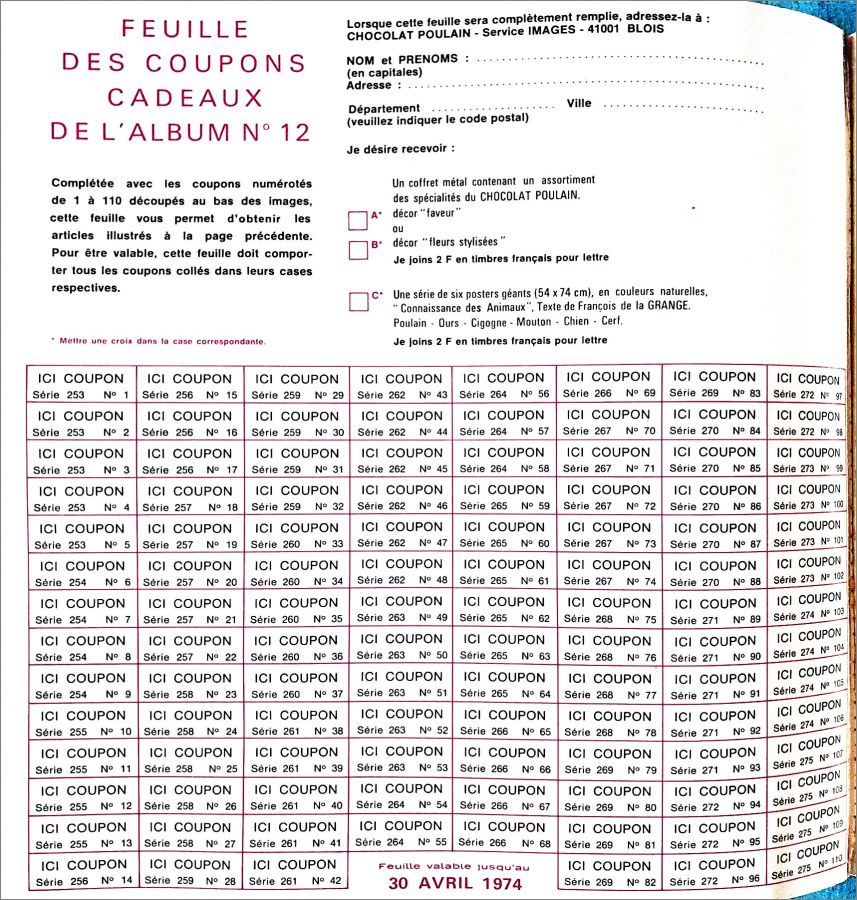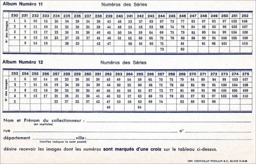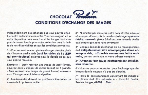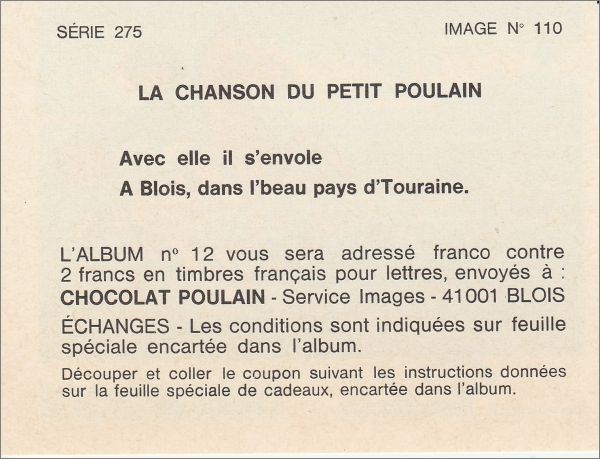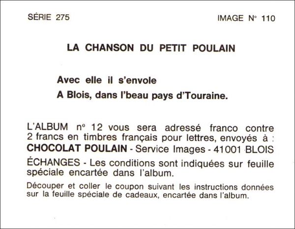 Chocolat Poulain Série 253 à série 275 : 1 à 110 ( voir détail dans la fiche)