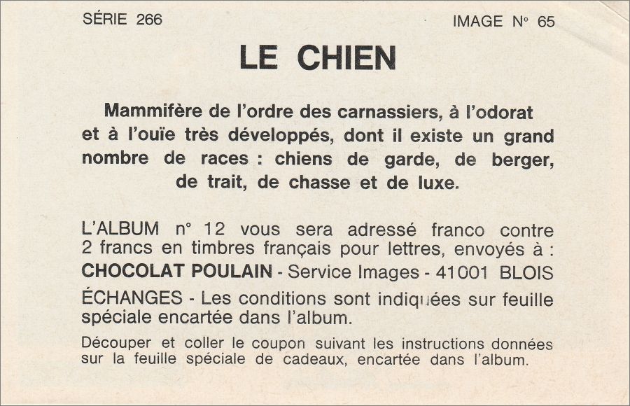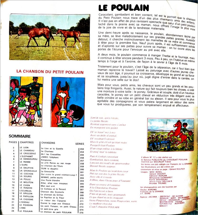 Les Animaux en Chansons - Album N°12 Chocolat Poulain - 1973