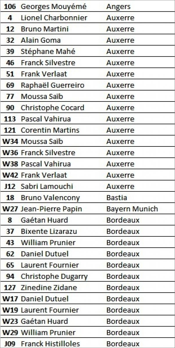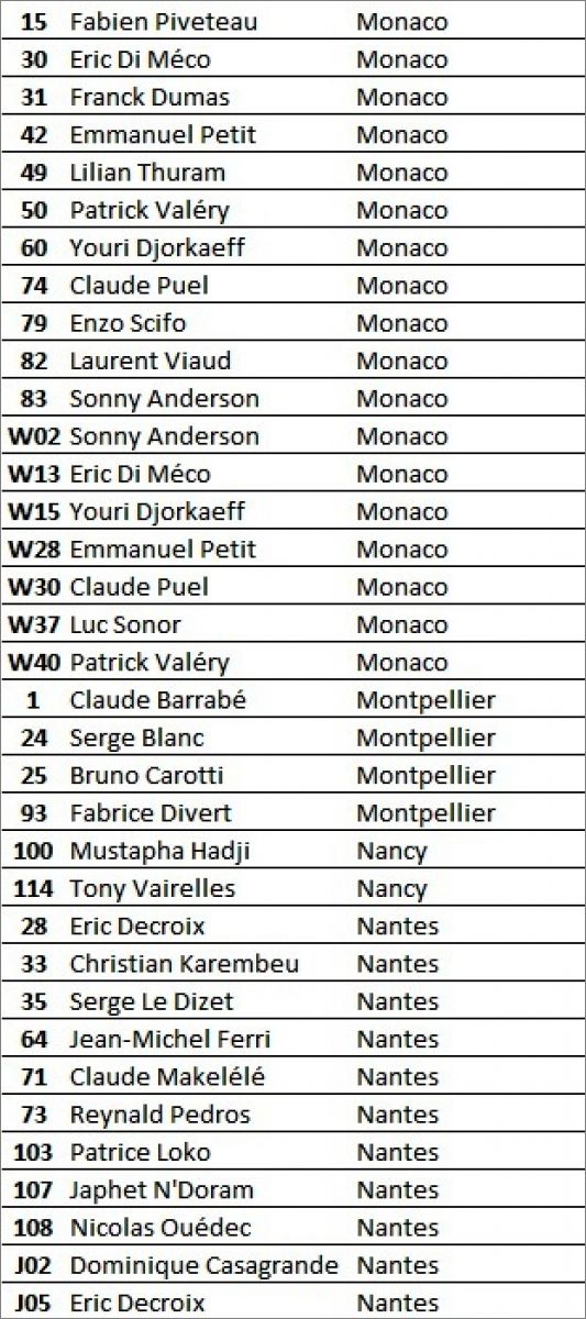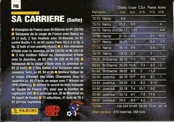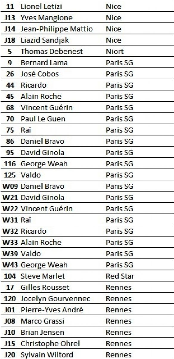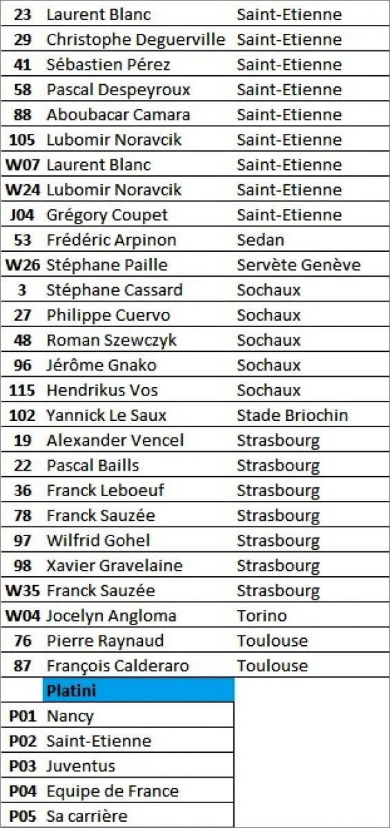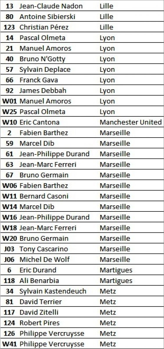 Panini: 1 à 127, W1 à W43, J1 à J20, P1 à P5, Checklist non numérotée (référencée C1 dans la fiche)