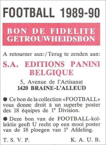 Football 89 - Belgique - 1ère et 2ème Division - Panini 1989