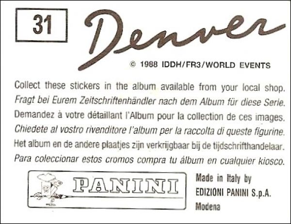 Denver - Le Dernier Dinosaure - Sticker Album - Panini 1989