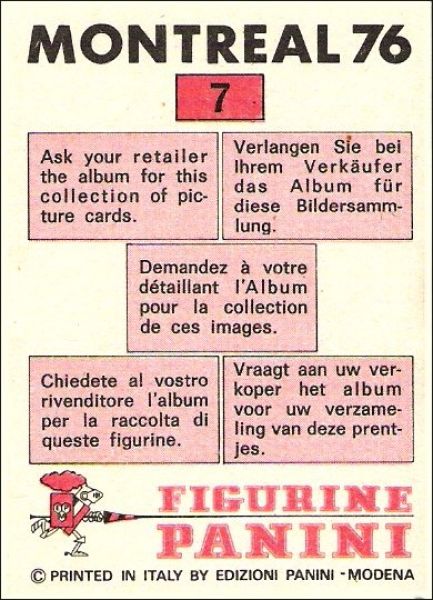 Montreal 76 - Jeux Olympiques - Figurine Panini - 1976