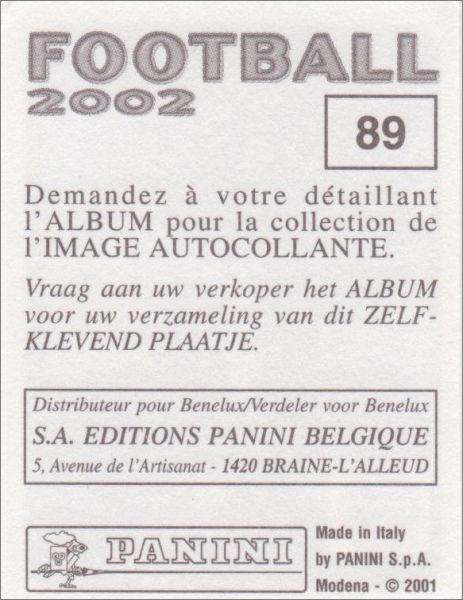 Football 2002 - Belgique - 1ère et 2ème Divisions - Panini