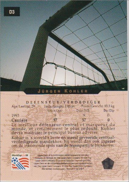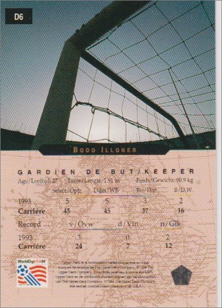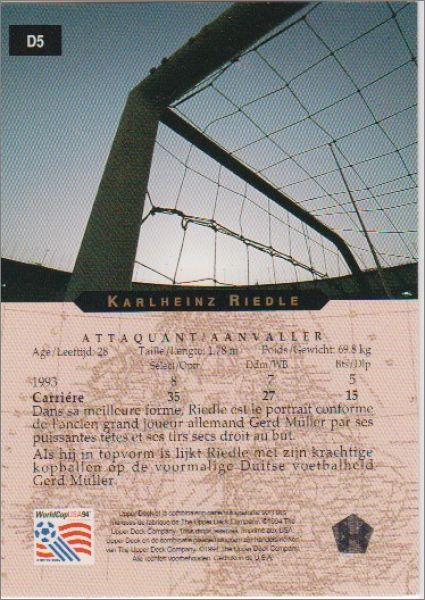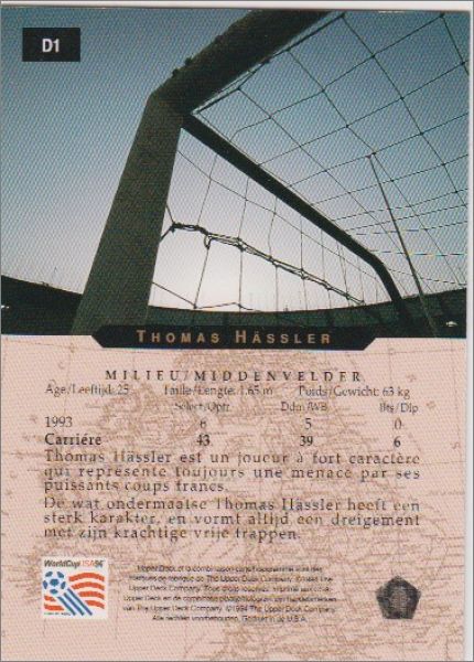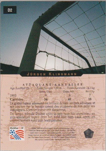 Les cards sont les mêmes que World Cup USA 94 Upper Deck mais ont une une numération différente et ont le logo McDonalds au dos.