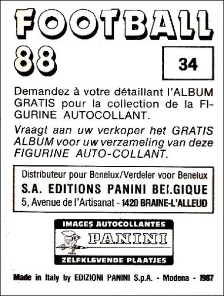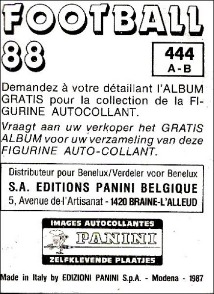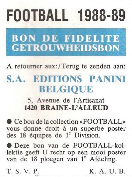 Football 88 - 1ère et 2ème Division Figurine Panini Belgique