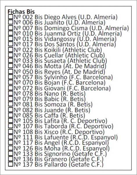 Panini : 1 à 504, 79 Fichas Bis (voir checklists dans la fiche)
