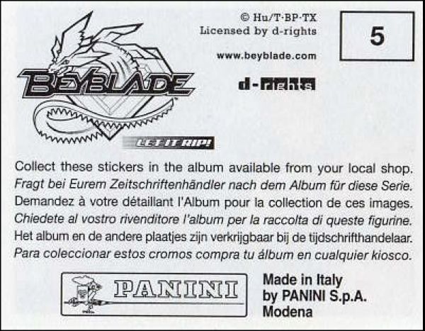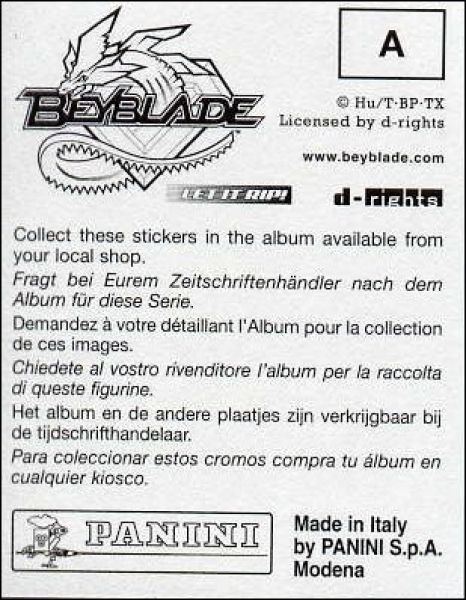Beyblade - Hyper Vitesse - Sticker Album - Panini - 2003