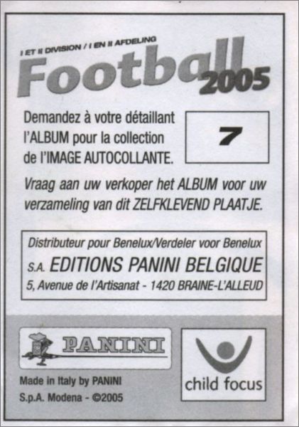 Football 2005 - Belgique - 1ère et 2ème Divisions - Panini