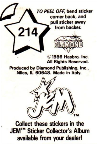 Jem - Sticker Album - Diamond - USA / Canada - 1986
