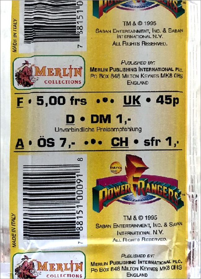 Power Rangers - Saison 1 - Cards Merlin - 1995 - Allemagne
