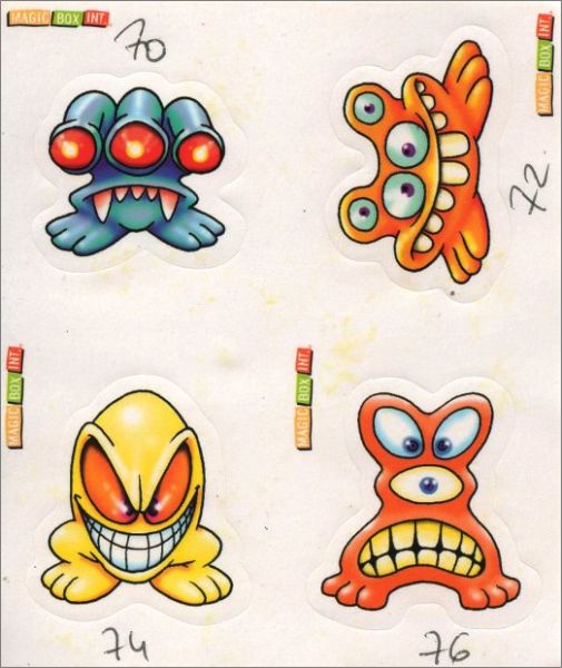 Les images ne sont pas numérotées, il suffit de rechercher le n° correspondant dans l'album (les images sont pré-imprimées en noir et blanc). Elles sont regroupées par plaquette de 4. Le dos des plaquettes est blanc.