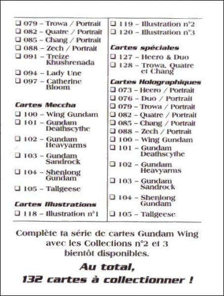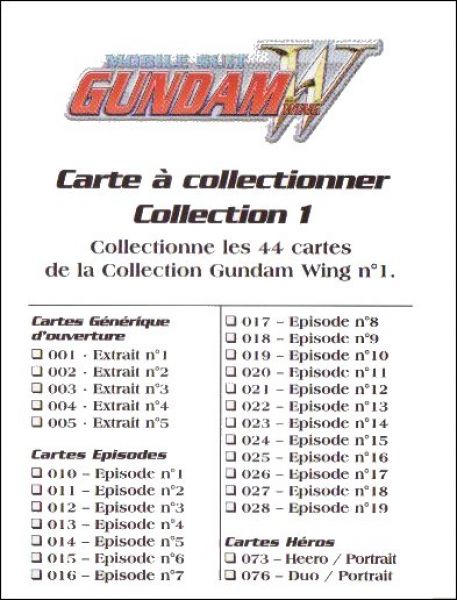Gundam Wing - Série 1 - Bandaï Trading Cards