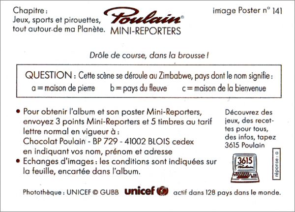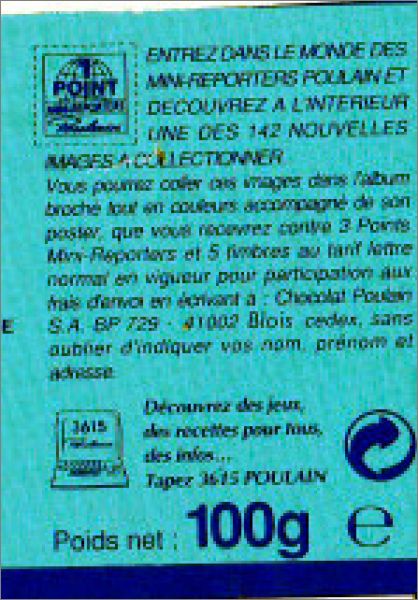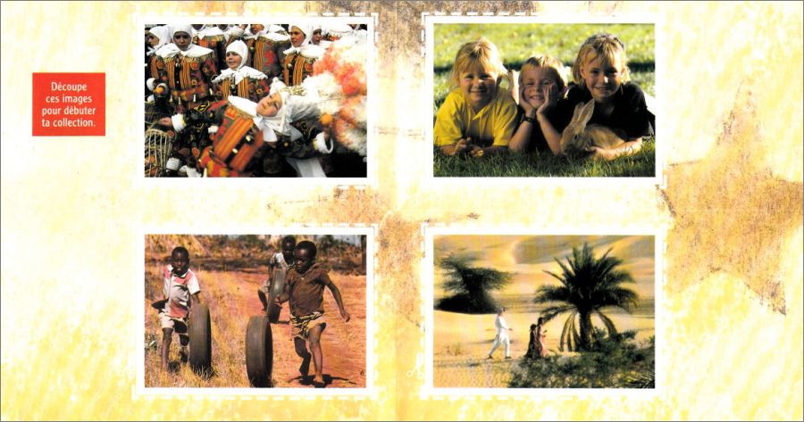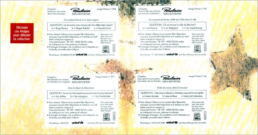 Le poster vide comporte quatre images (141 à 144) en bas "Découpe ces images pour débuter la collection". Elles ressemblent en texture aux autres images, il suffit juste de les découper avec des ciseaux. Il existe deux types d'images 141 et 142 (dans les tablettes et découpables sur le poster) et un seul type d'images pour les 143 et 144 (découpables sur le poster).