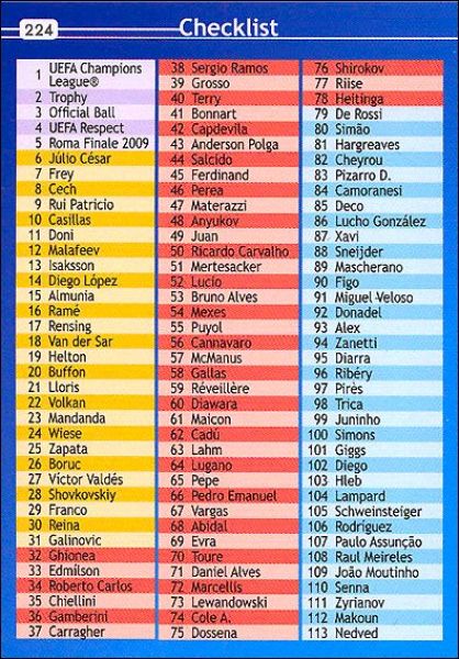 Panini: 1 à 225