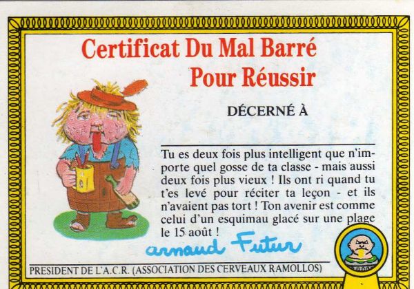 Un des meilleurs, toute mon enfance, nostalgie de cours d'école et de vie, album marrant, image gore mais soutenu, texte humoristique et prénom qui rime,des certificats au dos, a fait parler de lui dans les journaux tv. un vrai collector et un must.