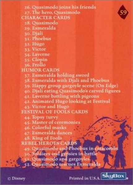 The Hunchback of Notre Dame - Trading Cards - Skybox - 1996