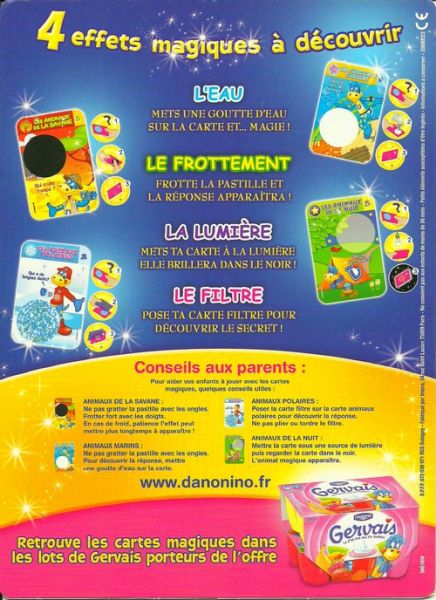 http://www.danonino.frDétail des 4 séries de 5 cartes: