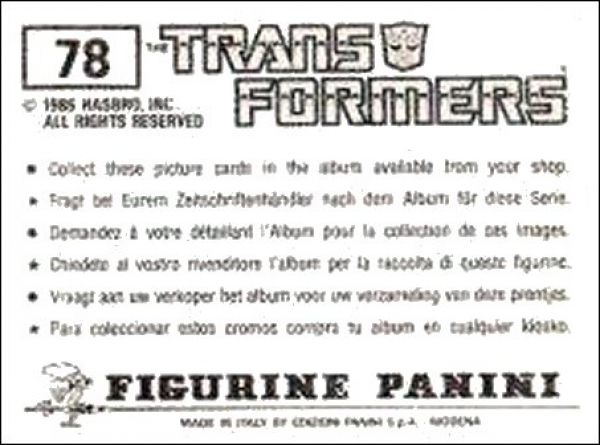 The Transformers - Hasbro - Album Figurine Panini - 1986