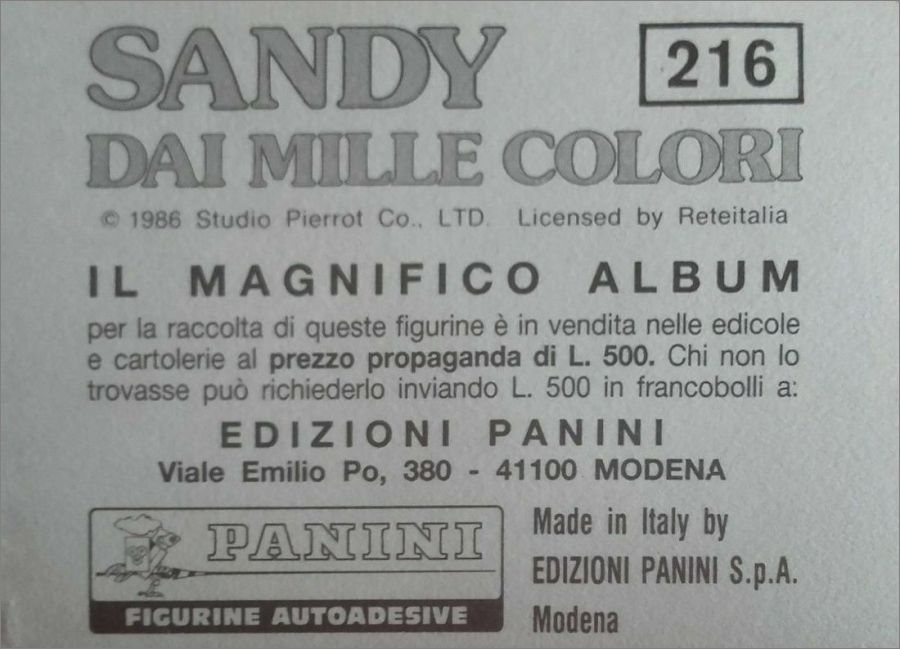 Sandy - Dai Mille Colori - Sticker Album Panini 1986 Italie