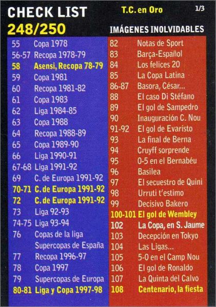 Magnifique ! Retraçant les grands moments du club à l'occasion de son centenaire, cette collection de cartes à insérer dans un classeur est encore la plus grande à ce jour sur ce club (250). Si vous devez en avoir 1, c'est celle-ci ! Pour les fans !