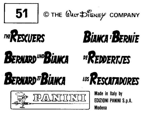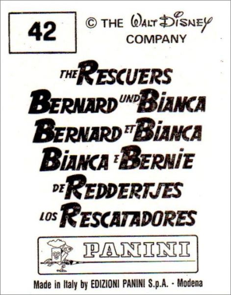 Bernard et Bianca (Walt Disney) - Sticker album Panini 1987