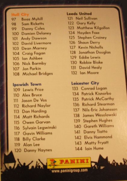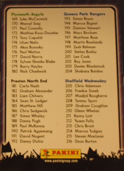Panini : 1 à 288, Reg( règle du jeu), 1-4 à 4-4 (Checkliste)