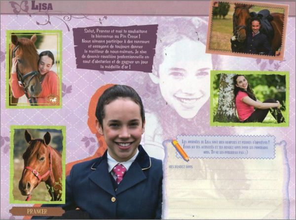 Il contient de nombreux espaces réservés à l'écriture que tu pourras compléter (Mes passions, Mes rendez-vous, Mon look...), des conseils d'équitation, des infos sur les races des chevaux...