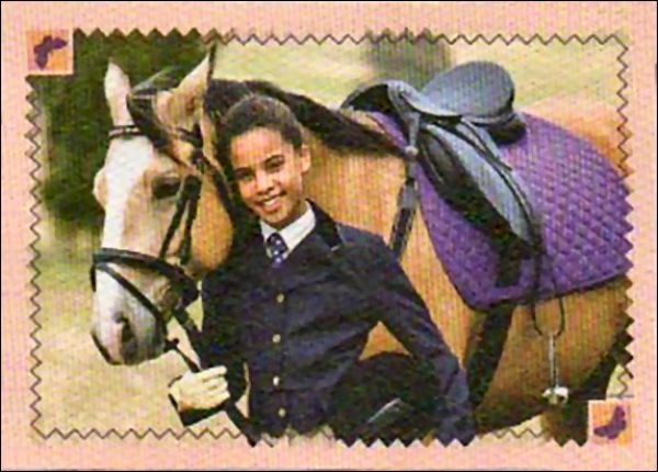En plus des stickers, tu trouveras dans chaque pochette une magnifique carte marque-page !! Il y en a 10 en tout, chacune d'elles est consacrée à l'un des héros Grand Galop et à son cheval !