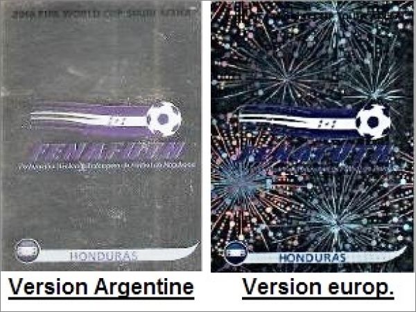 Argentine : 40 images brillantes identiques à celles de la version internationale mais à l'aspect métallisé et lisse, sans l'intégration de l'hologramme Panini (voir les images de comparaison dans la fiche).