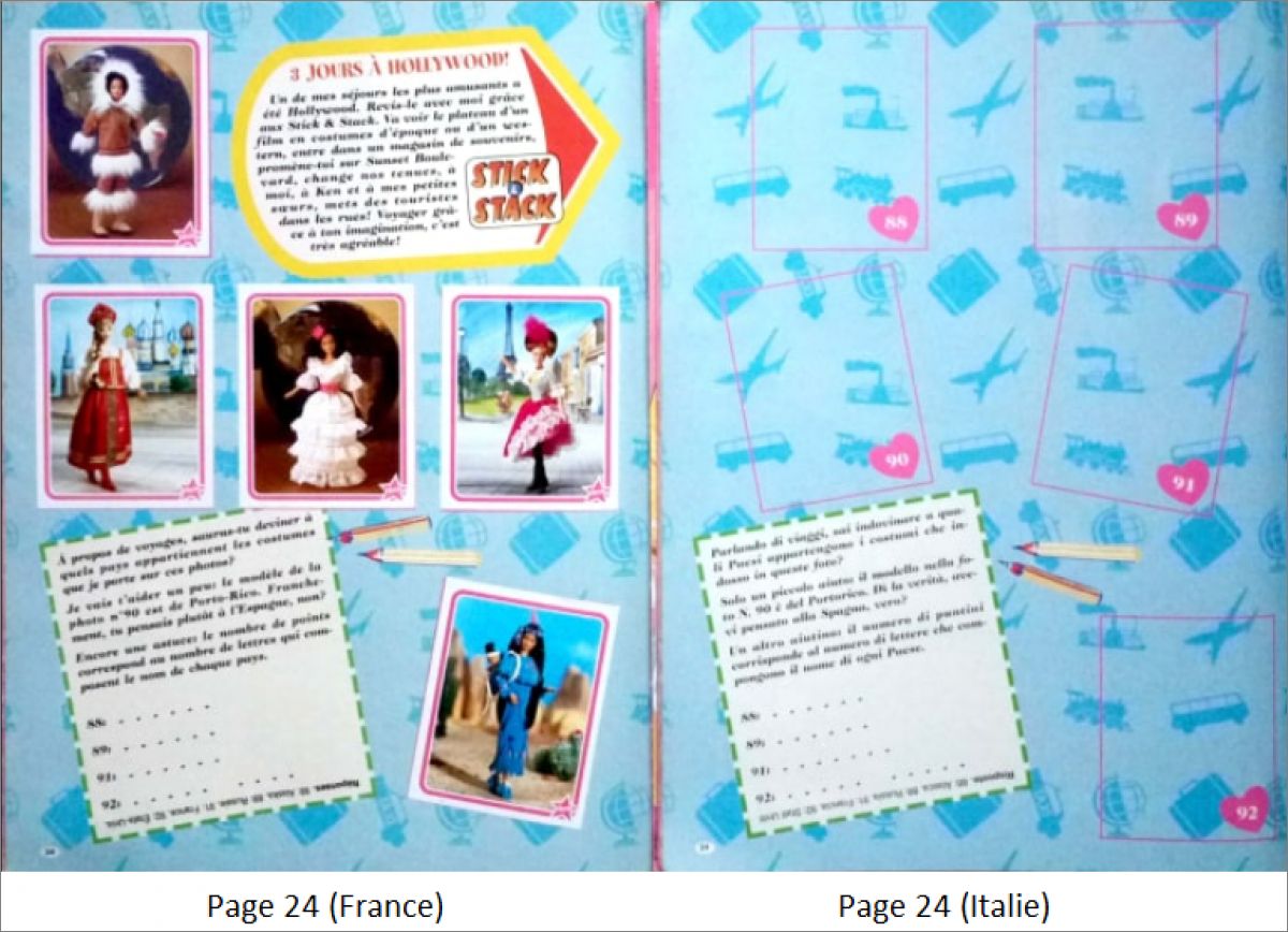 Sur la page italienne, pas de texte et les stickers 88 à 92 sont disposés différemment (voir scan)