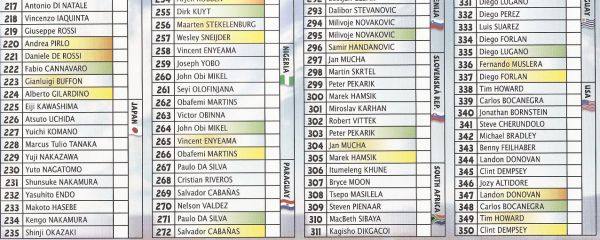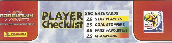 Adrenalyn™ XL . Panini : 1 à 350 + 20 cartes Editions Limitées (voir checklist dans la fiche)