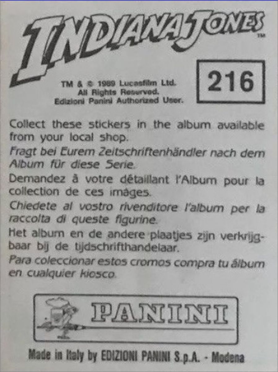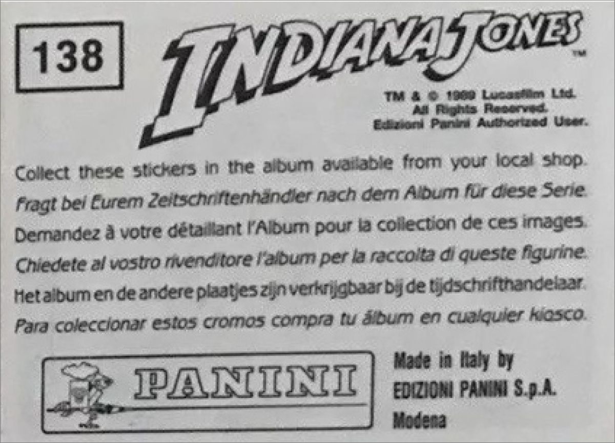 Indiana Jones - Sticker Album - Panini - 1989 - Italie
