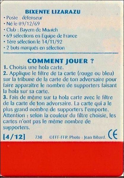 La vache qui rit : B1 à B12 (B = Carte Bleue), R1 à R12 (R = Carte Rouge)