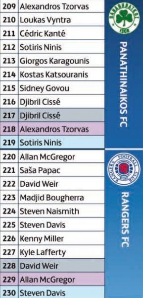 LE25 = Steven Davis (Glasgow Rangers)