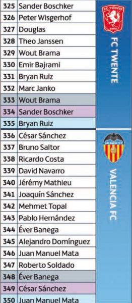 Cartes Star Players (1 sur 4 pochettes) *star : 17, 37, 38, 59, 60, 73, 84, 95, 114, 115, 136, 137, 154, 174, 175, 191, 208, 219, 230, 250, 251, 267, 282, 298, 311, 324, 335, 350, U42, U95