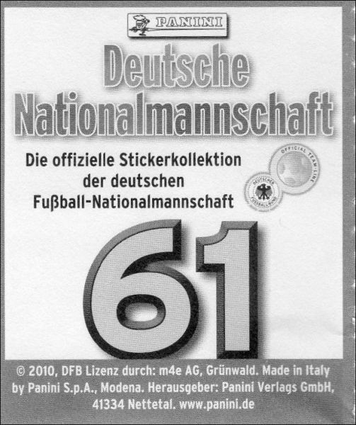 Deutsche Nationalmannschaft 2010 - Panini - Allemagne