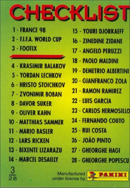 Panini : 1 à 28