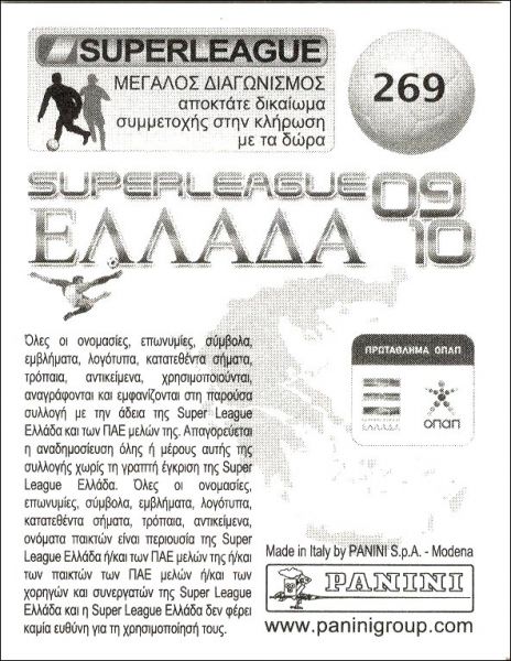 Superleague 2009-2010 - Panini - Grèce