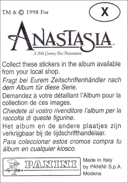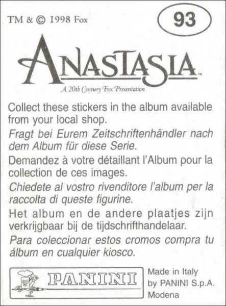 Anastasia - Sticker Album - Panini - 1998