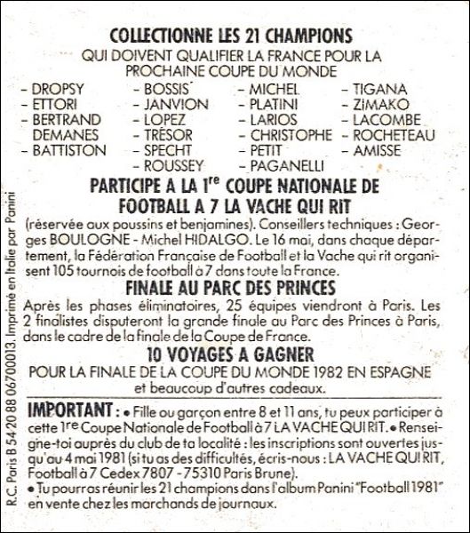 Ces images peuvent se coller dans l'album Football 1981 :