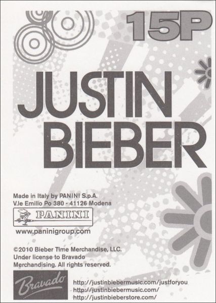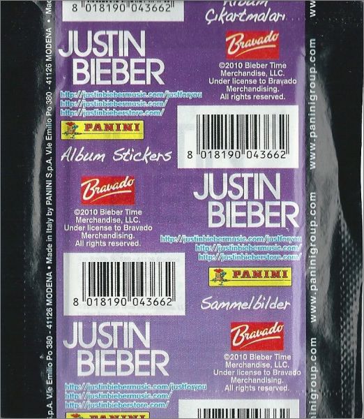 Justin Bieber From Justin to You - Sticker Album Panini 2011