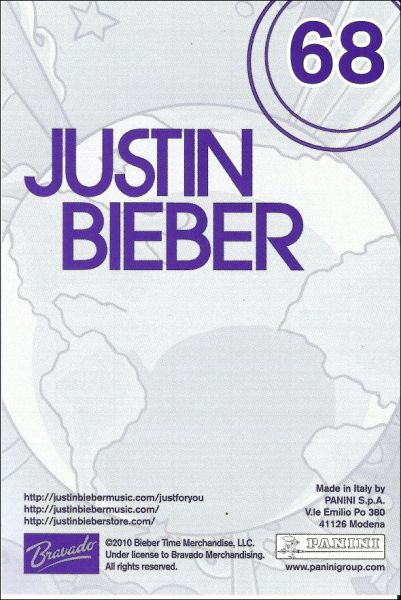Justin Bieber PhotoWorld - Photocards - Panini - 2011