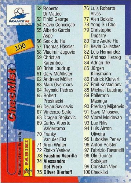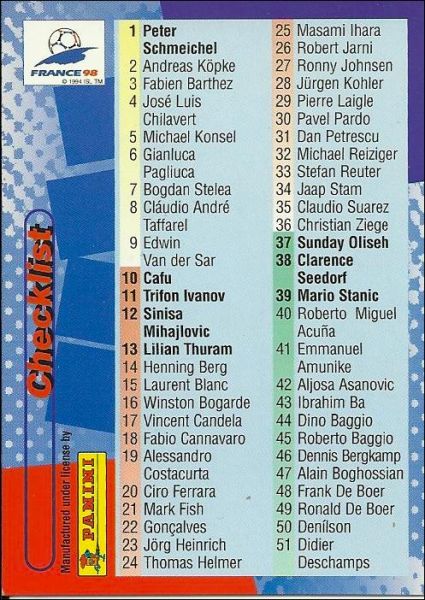 World cup France 98 - 100 Trading cards - Anglais