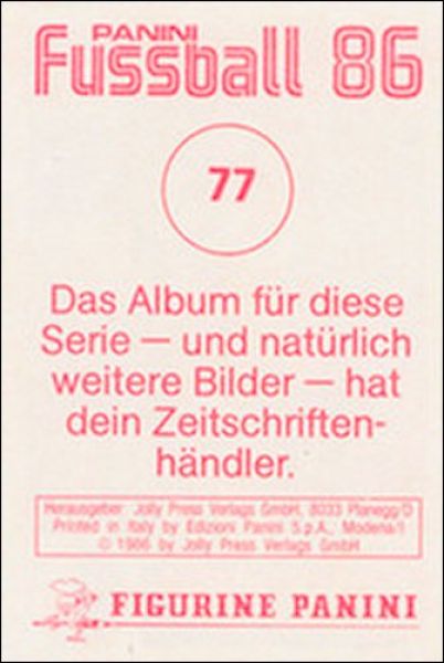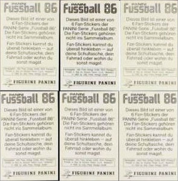 Au dos de chaque image, il est précisé : "Cette image est l'une des 6 "Fan-Stickers" de la série Fussball 86. Les "Fan-Stickers" n'appartiennent pas à la collection. Tu peux coller les "Fan-Stickers" partout : sur ton cartable, ton vélo, ou sinon n'importe où tu aimerais."