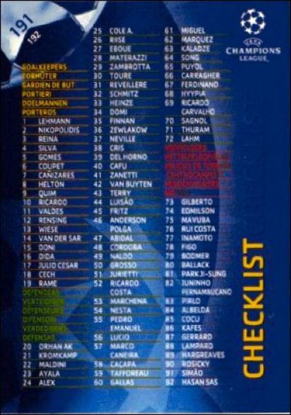 UEFA Champions League 2006/2007 - Trading Cards