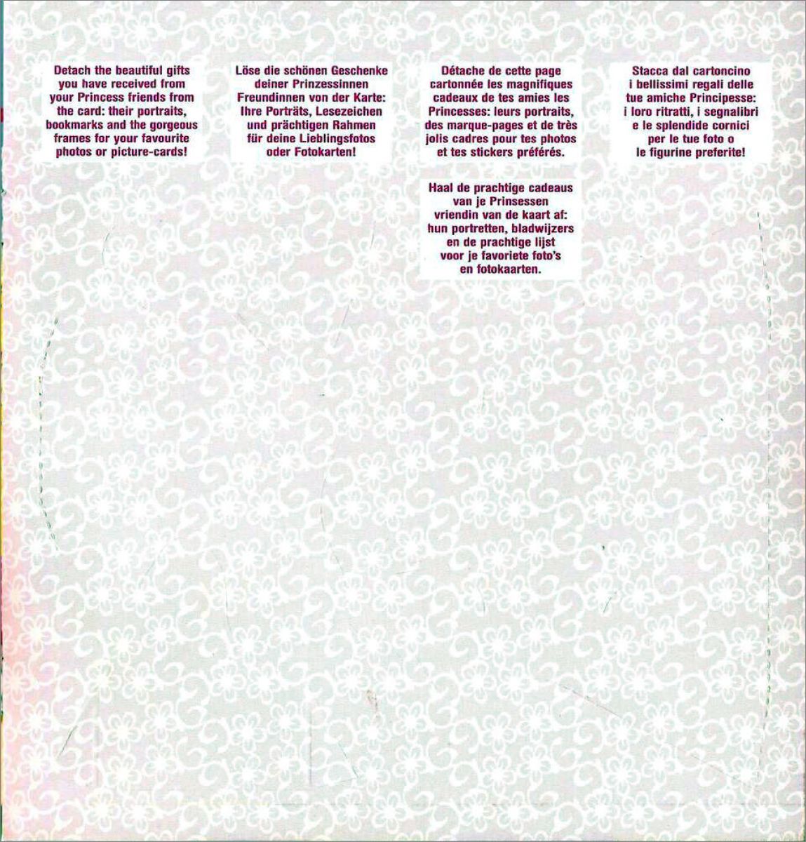 Paru en France/Belgique/Suisse (Mes Princesses), Pays-Bas, Espagne (Mis Princesas), Royaume-Uni (My Princess), Italie (Le Mie Principesse).