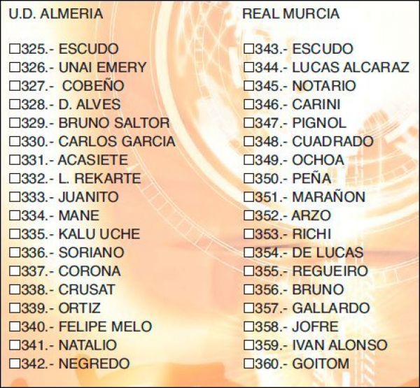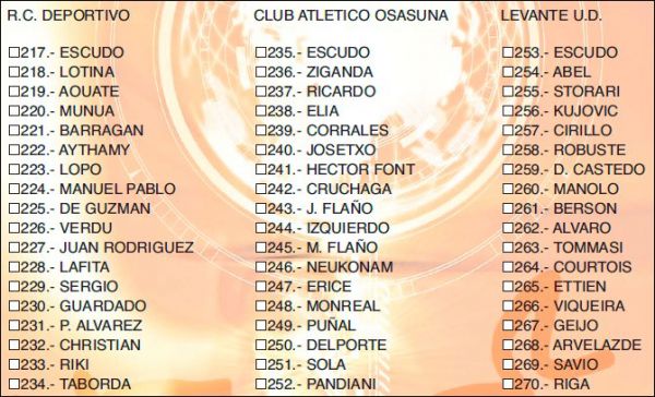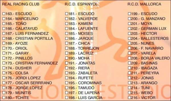 - une série de 54 cartes "ultima hora" (joueurs arrivés en cours d'année)