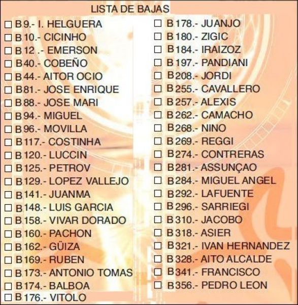 - 43 cartes composant une "lista de bajas
