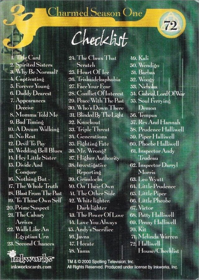 Charmed Season 1 - Tranding Cards - Inkworks - 2000 - USA