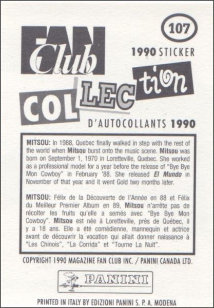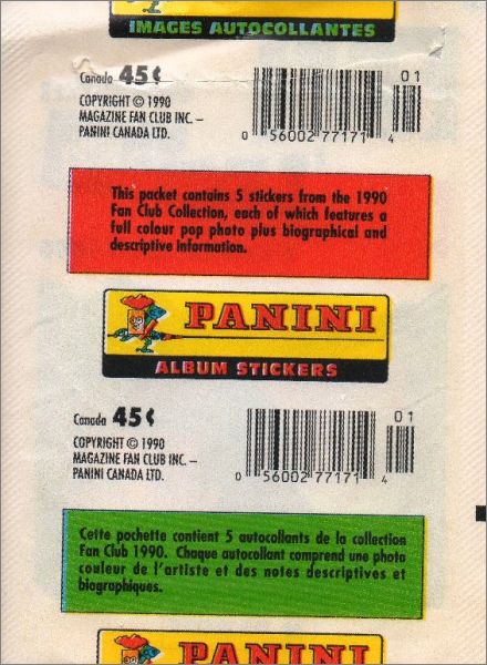 Fan Club Collection 1990 -Pop Star Sticker - Panini - Canada